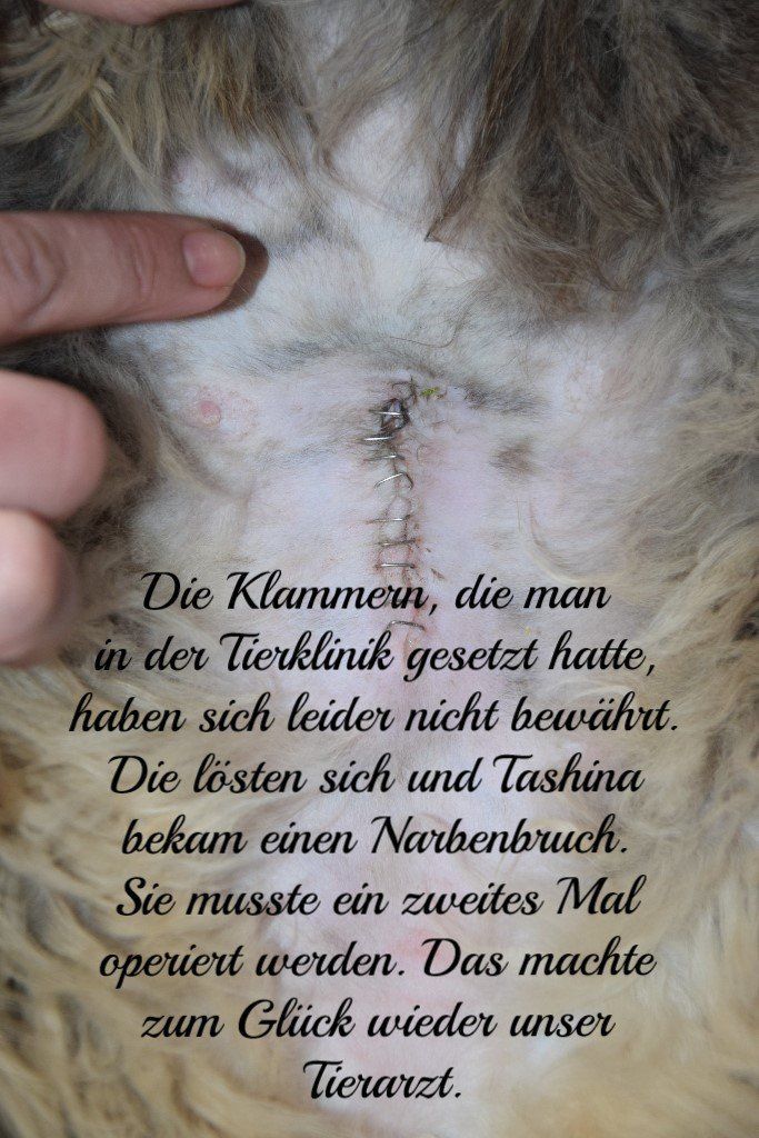In der Klinik wurde noch ein Baby, eigentlich gar nicht so klein, ein schwarzes, geholt und das andere war tot. Leider wurde auch die Diagnose Gebärmutterentzündung bestätigt. Die Vertretung unseres Tierarztes hatte schon vermutet, dass da etwas ist, weil Tashina erhöhte Temperatur hatte. Daher auch die Frühgeburt. Um nicht auch noch das Leben von Tashina zu riskieren, musste die Gebärmutter entfernt werden. Die OP lief glatt.