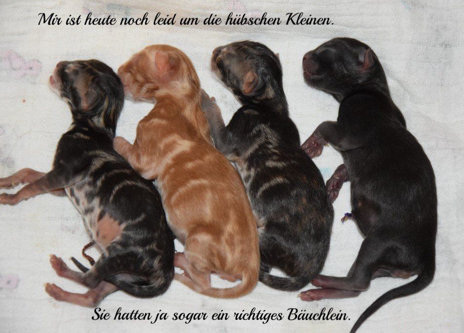 Leider kam es nicht so. Zweimal absorbierte sie eine Schwangerschaft. Uns war das nicht ganz fremd. Wir hatten einmal bei einer Züchterin einen Hund bestellt, der noch gar nicht geboren war und die Hündin hat dann die Schwangerschaft absorbiert. Auch der Tierarzt bestätigte uns, dass das vorkommen kann, sogar öfter und dass eine Katze später aber ganz normal ihre Jungen bekommen kann.
